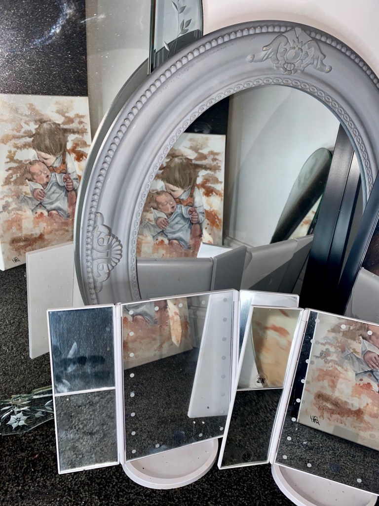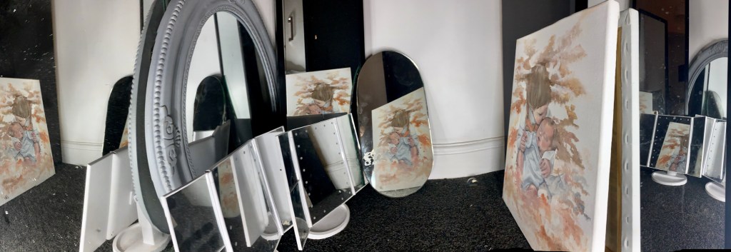 Distorted Love, 2020, Oil on canvas seen through multiple mirrors, 41 cm x 51 cm (painting) dimensions variable (installation)